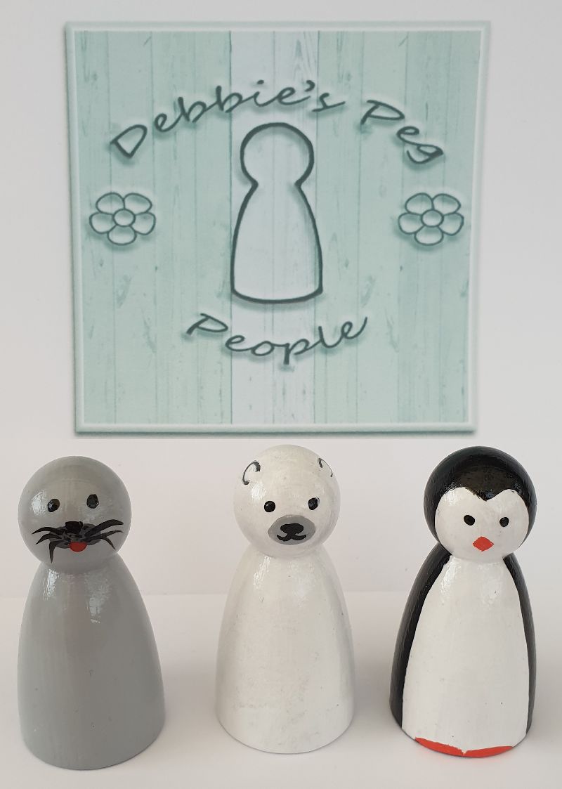 Animal Peg Dolls, Seal Polar-Bear and Penguin by Debbie’s Peg People